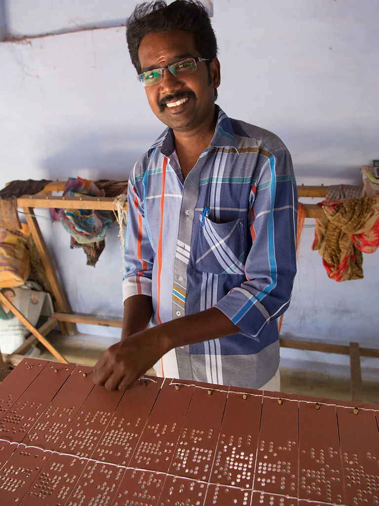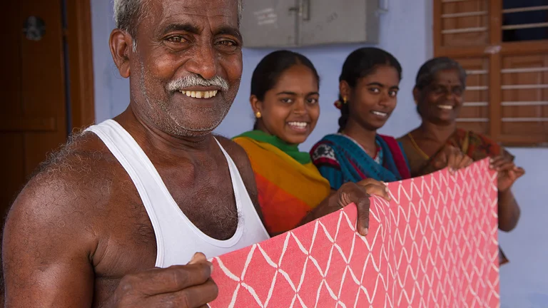 Die Kooperativen in der Stadt Chennimalai produzieren die handgewebten Produkte für die GEPA. Die meisten Mitglieder arbeiten zu Hause, teilweise auch in sogenannten Weberdörfern, die mit finanzieller Unterstützung der Regierung entstanden sind. „Am Ende des Jahres bekommen wir einen Bonus, vorausgesetzt, die Kooperative hat einen Gewinn erzielt. Als Mitglieder einer Kooperative profitieren wir von einem Wohlfahrtsprogramm der Regierung, sind zum Beispiel krankenversichert und erhalten später eine kleine monatliche Rente“, so Benumika und Muruyiesem, Mitglieder der Kooperative Chentex in Chennimalai.