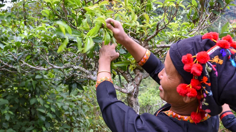 Die Bäuer*innen, die unserem Tee-Partner die Bio-Teeblätter liefern, gehören zu den in der Gegend ansässigen Phu Noi, einer sino-burmesische Ethnie. Zurzeit bezieht die Familie Kamphan die Bio-Teeblätter von Familien, die in den Dörfern Ban Khunsuk Noy, Ban Khunsuk Luang, Ban Sailom, Ban Nong Kinnaly und Ban Komaen leben. In ihrer Umgebung befinden sich tropische Regenwälder, in denen noch die Ur-Teepflanzen wachsen. Dort sammelten die Bäuer*innen vorsichtig die Samen, aus denen sie ihre Bio-Teepflanzen ziehen, die in der Nähe ihrer Häuser wachsen. Der Biotee-Anbau ist die Haupterwerbsquelle der Phu Noi und die lokalen Behörden fördern den Anbau der Ur-Teepflanze.