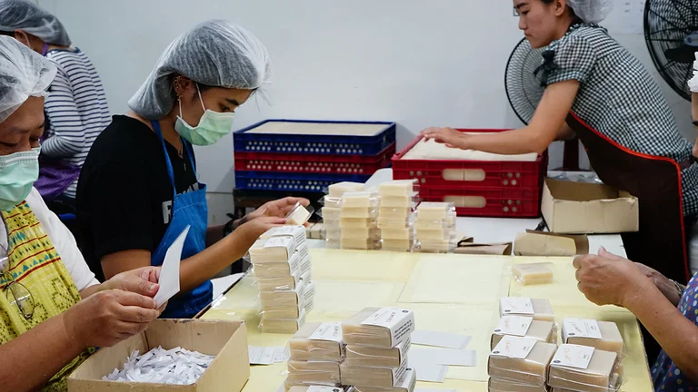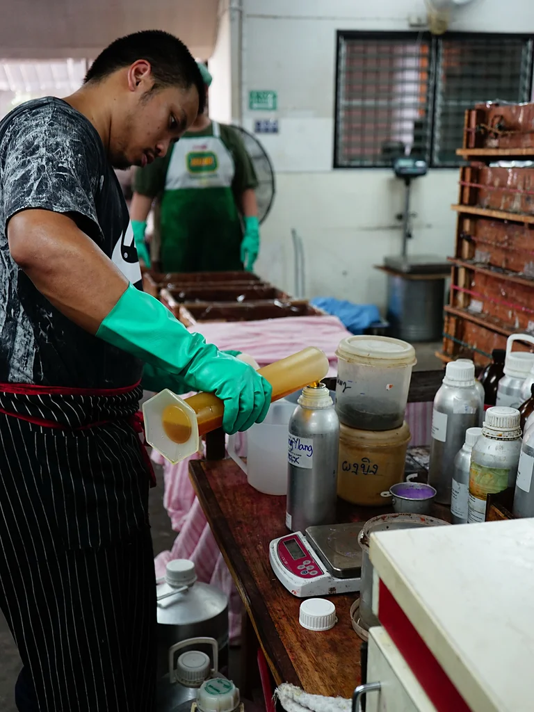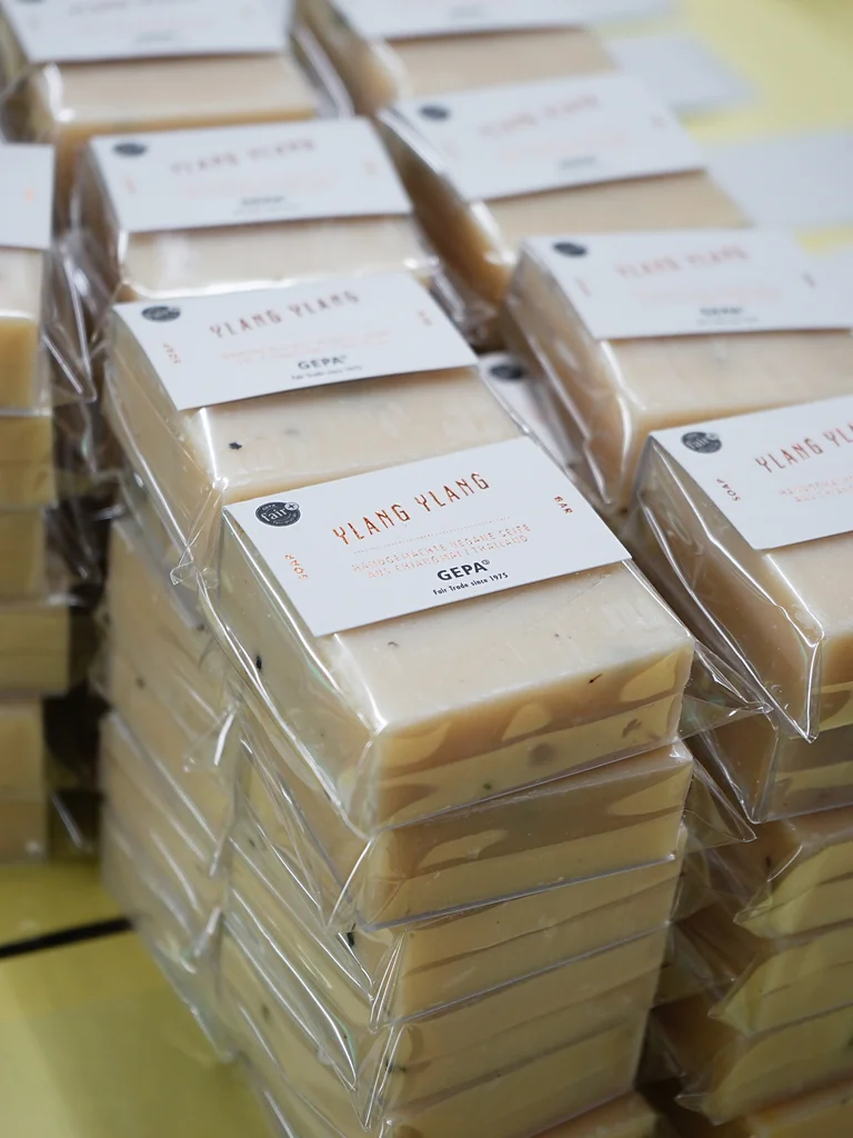 Mit handgemachten Seifen gute Arbeitsplätze schaffen – das ist das Besondere beim Handelspartner SOAP-n-SCENT in Thailand. Im Jahr 2004 gründete Pimarn Tovanabootr, die zuvor in den USA gelebt hat, ihre eigene kleine Firma in Chiangmai. Aus einem Hobby wurde ihre Aufgabe. Zunächst hat sie in der Garage mit der Seifenproduktion begonnen und ihre Ware anschließend auf dem Markt verkauft. Inzwischen arbeiten die Mitarbeiter*innen in einer kleinen Werkstatt. Und es gibt einen eigenen Laden in Chiangmai. Wenn zusätzliche Aufträge eingehen, werden noch weitere Frauen für zwei bis vier Wochen eingestellt, die bei der Produktion helfen. Das Kokosöl und das Reiskleie-Öl für die Seifen kommen aus Thailand und weitere Rohwaren von Händlern.